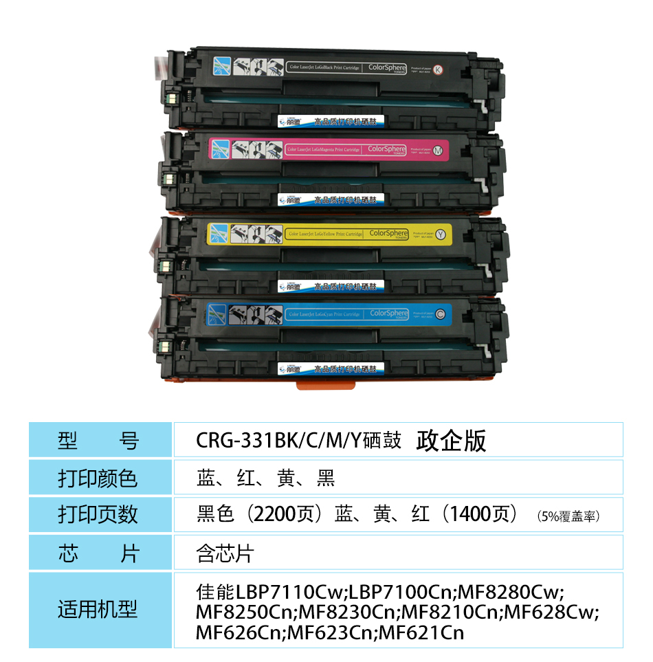 丽盟 CRG-331C蓝色硒鼓 适用佳能MF8210Cn 8230CN 8250Cn 8280Cw LBP7100Cn 7110Cw MF628Cw 626 623 621Cn