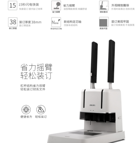 得力 3876A 装订机 财务装订机(白)