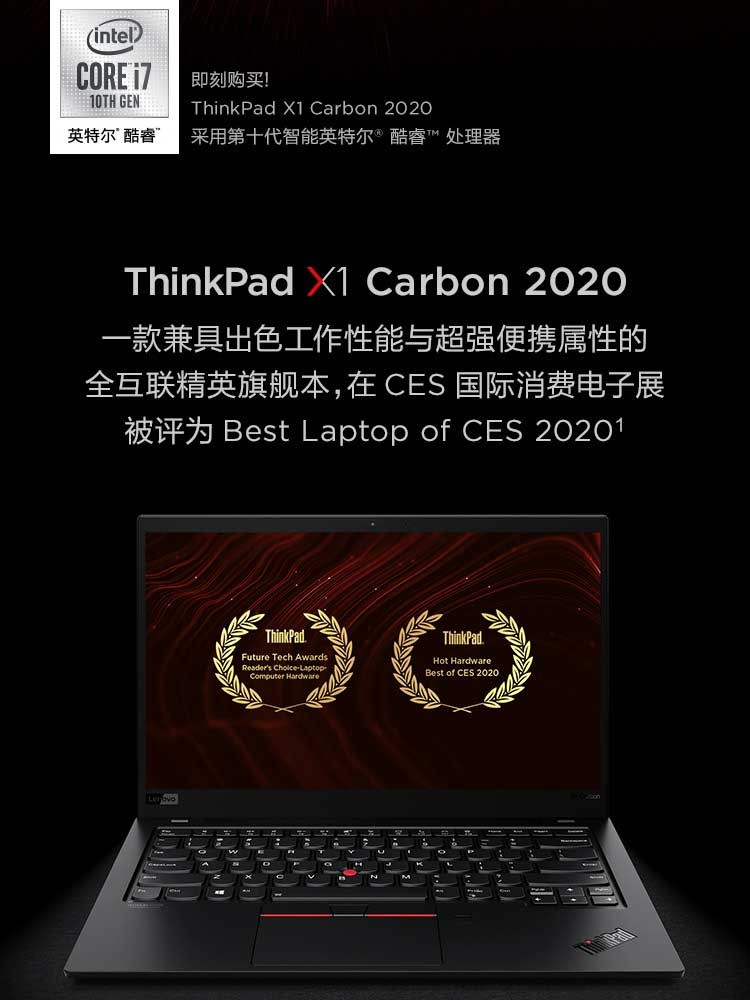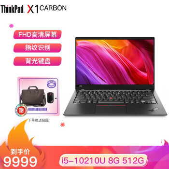 联想ThinkPad X1 Carbon 2020英特尔酷睿i5 14英寸轻薄笔记本电脑 i5-10210U 8GB 512G(36CD) FHD 背光键盘 Win10 office