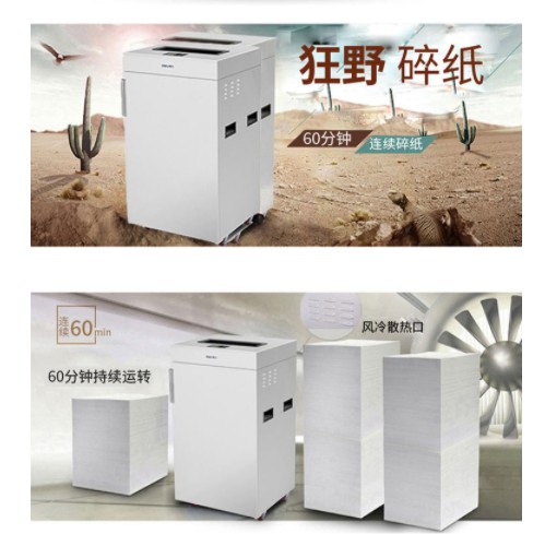 得力 9909 碎纸机 60分钟长时间工业级碎纸机 75L大容量办公商用文件颗粒粉碎机 触摸屏金属机身(商用)